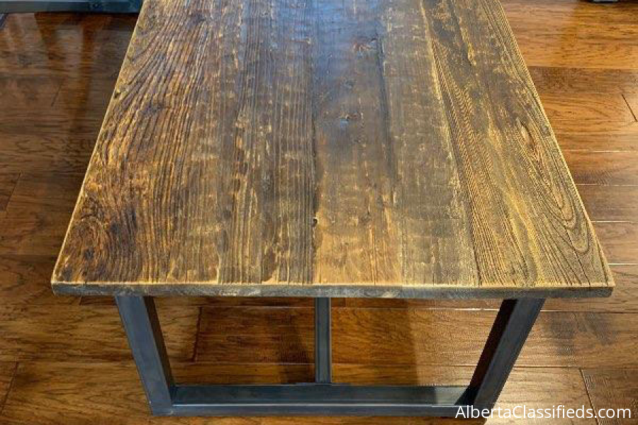 Urban barn coffee table. Reclaimed wood top, steel frame. Pickup in Beaumont. phone: 7808846111